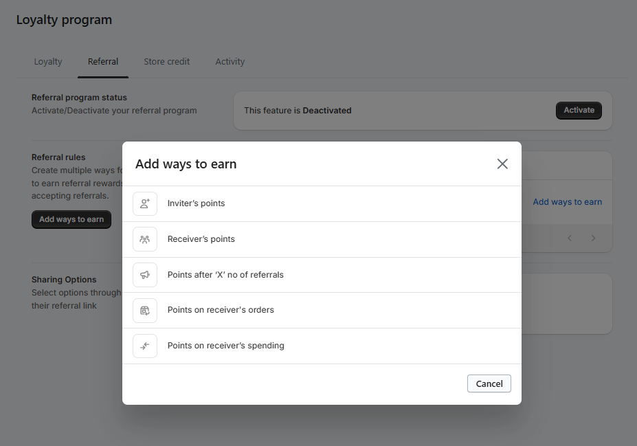 When you configure the receiver referral points in the admin, the receiver earns a fixed number of points upon signing up via a referral link, encouraging account creation while keeping rewards simple and manageable.